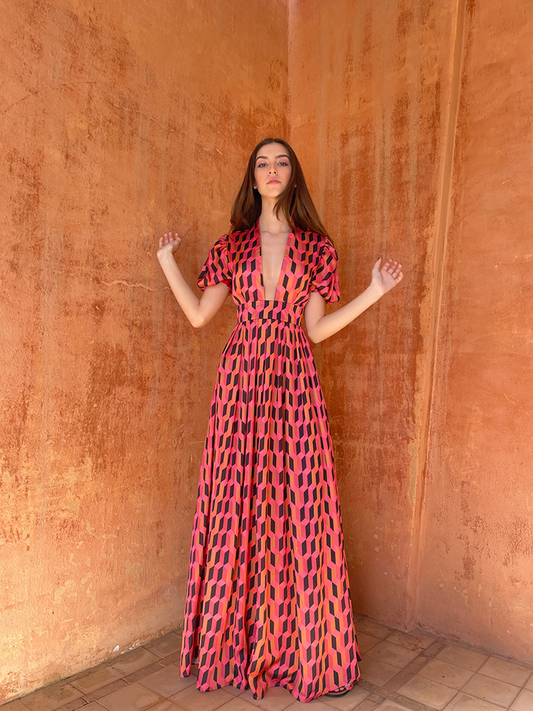 Alexia’s Dress Orange and Pink Print Cotton