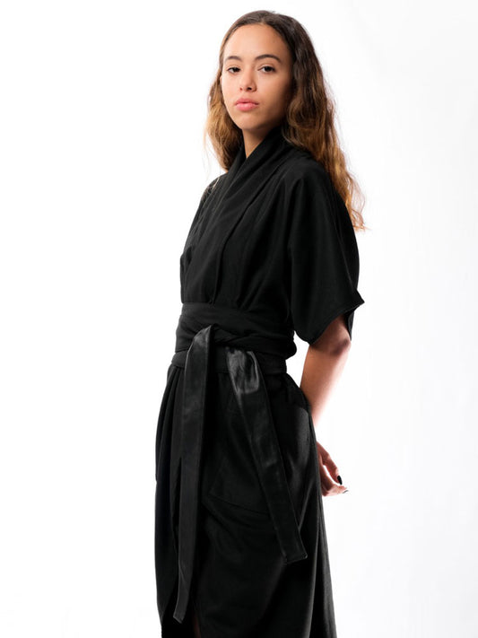 Nadia’s Dress Kimono Linen - Black