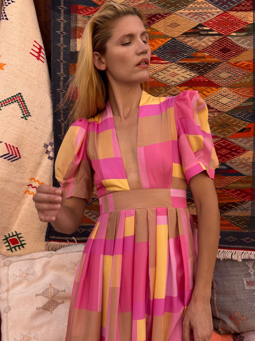 The gorgeous Alexia’s dress by Hanout Boutique in beautiful print with floaty fabric.