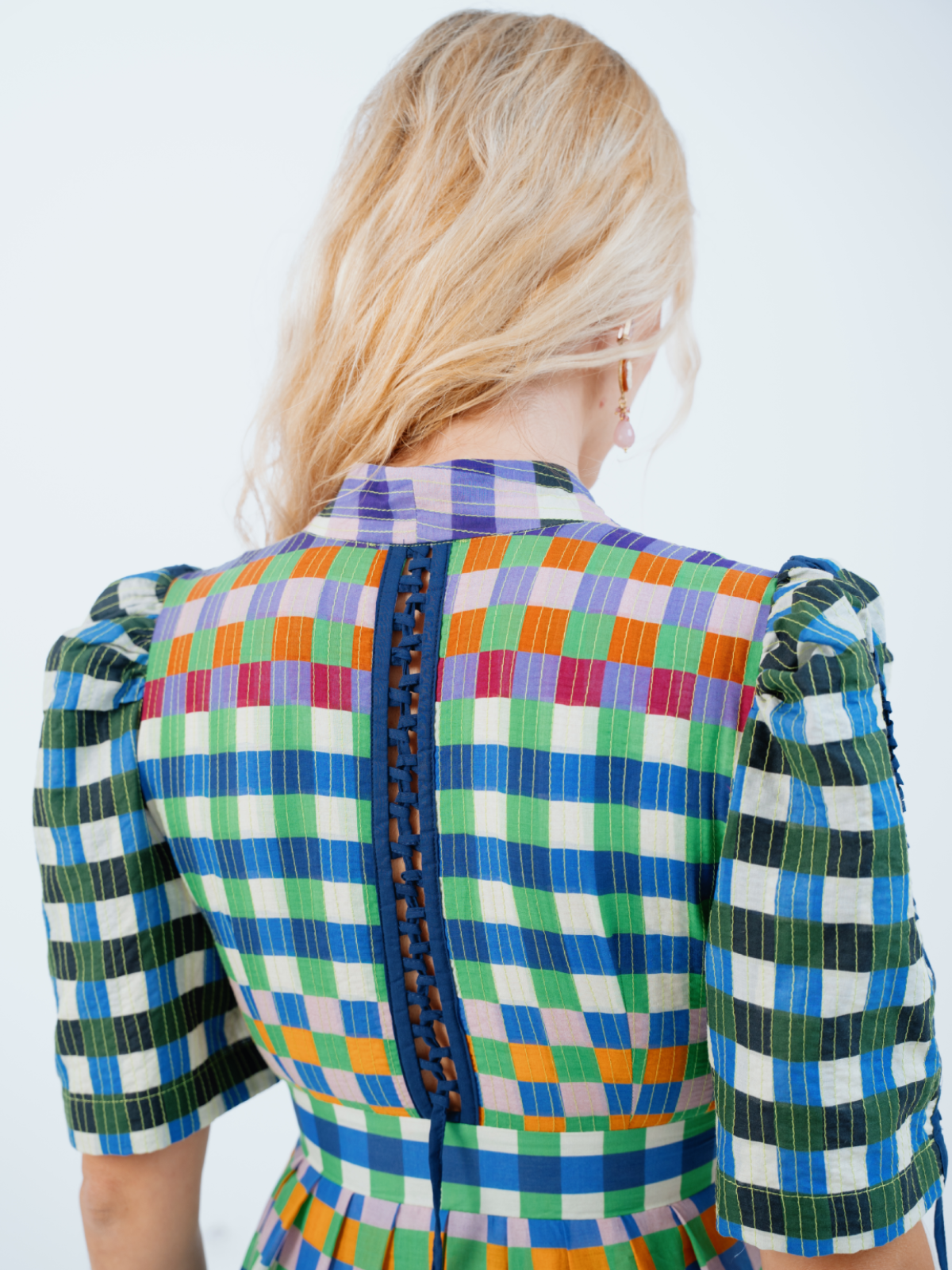 These numerous details added to the beautiful print of this light cotton makes this dress extra special.