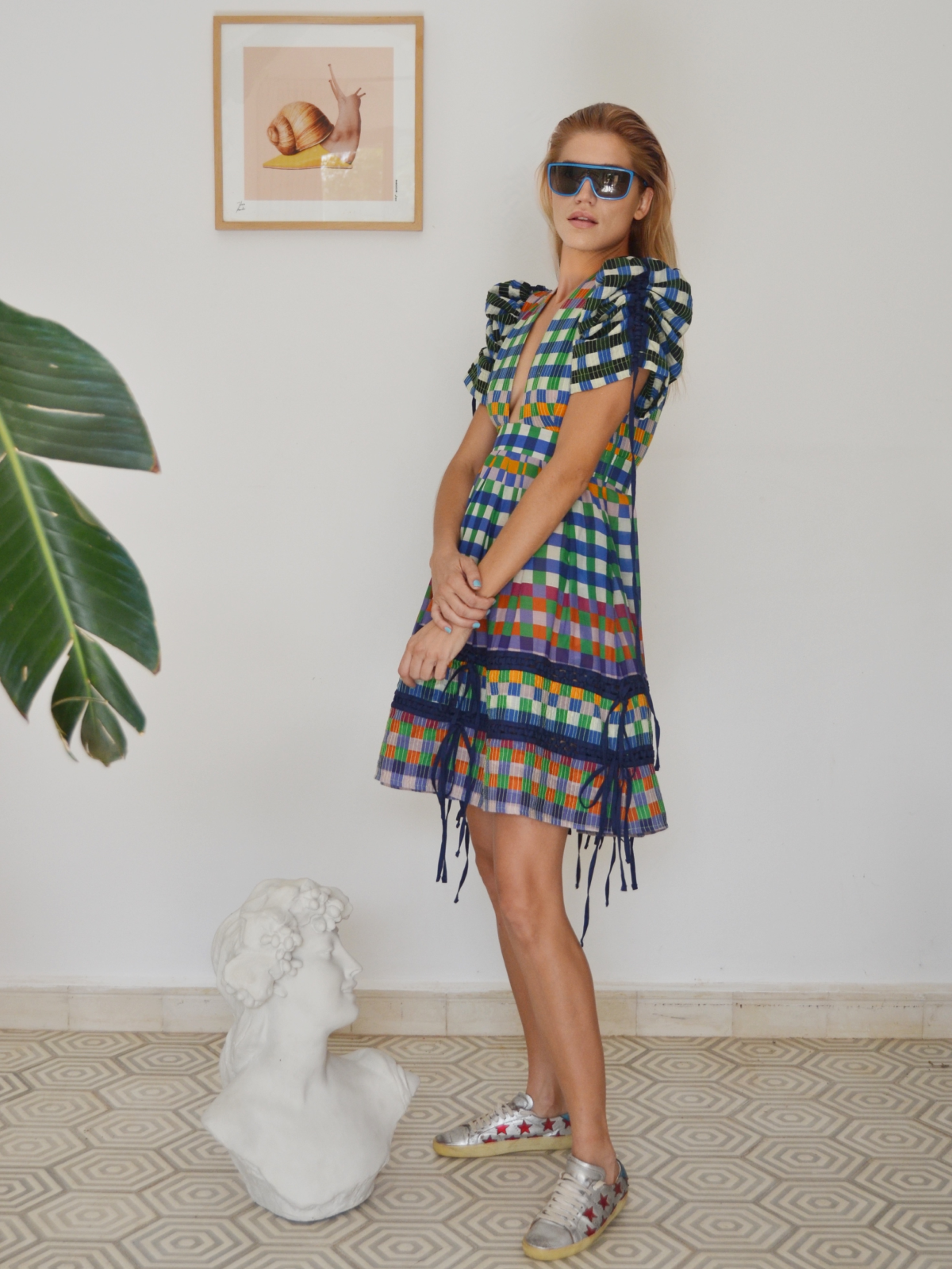 These numerous details added to the beautiful print of this light cotton makes this dress extra special.