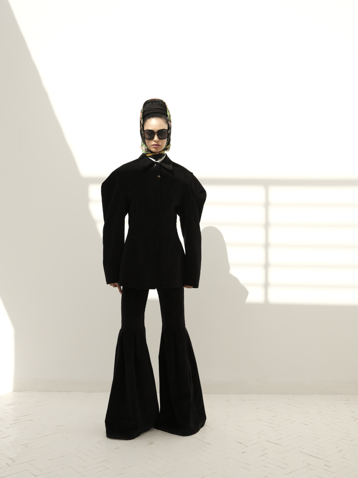 Step into timeless sophistication with the Alia Jacket. Crafted from rich, intense black corduroy, this piece combines bold character with effortless comfort. Its structured cut, soft texture, and subtle oversized shoulder make it perfect for layering—from casual daytime looks to elevated evening styles. Designed and made in Marrakech, the Alia Jacket embodies Hanout Boutique’s signature blend of modern tailoring and artisanal craftsmanship.